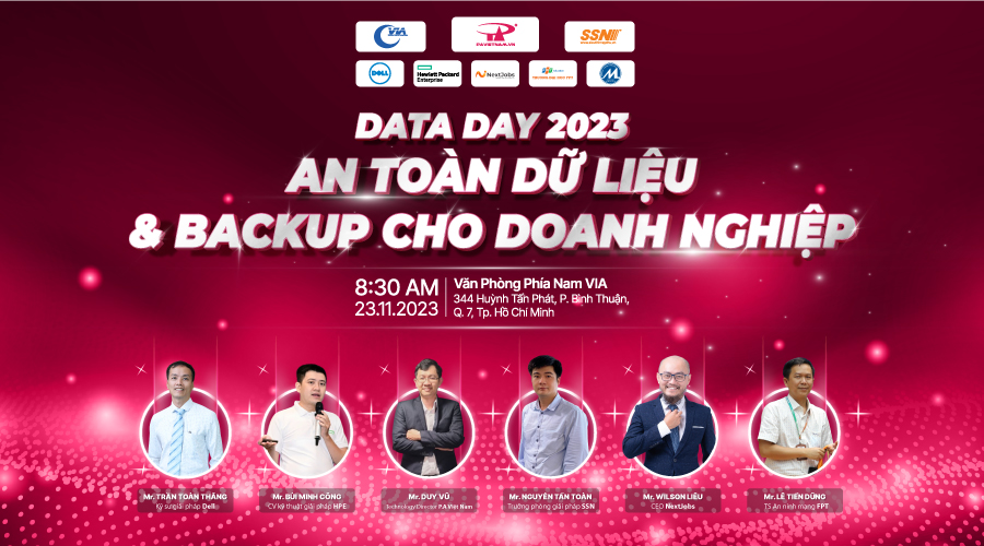 Ngày 23/11/2023, Hiệp hội Internet Việt Nam (VIA), DELL, HPE, P.A Việt Nam, NextJobs, Siêu Siêu Nhỏ, Trường đại học FPT, Trường đại học Tài Chính & Marketing (UFM) đồng tổ chức sự kiện Data Day 2023, với chủ đề: An Toàn Dữ Liệu & Backup Cho Doanh Nghiệp ngay tại Văn phòng Hiệp Hội Internet Việt Nam.